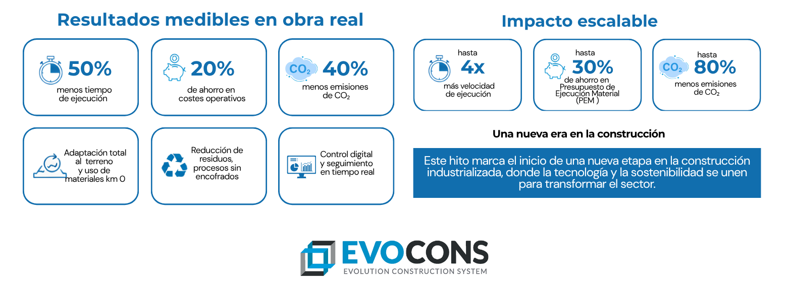 Aunque se trató de una construcción a pequeña escala, los resultados superaron las expectativas teóricas y validan el potencial del EvoConstructor®: